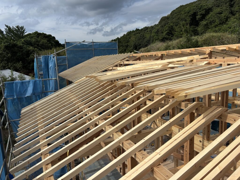 **屋根仕舞い(やねじまい)**とは、建物の屋根部分の骨組みが完成した後、防水や雨仕舞いを目的として屋根を覆う作業のことを指します。棟上げ後の重要な工程であり、家の耐久性や居住性に直結します。